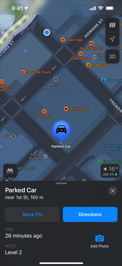 Maps doesn’t associate your data with your Apple Account, and Apple doesn’t keep a history of where you’ve been. Personalized features, like locating your parked car, are initiated right on your device. Data used to improve navigation, such as routes and search terms, is not associated with your identity. Instead, that information is based on random identifiers that are constantly changing.