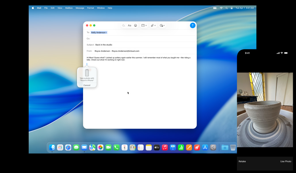 Der Mac, das iPhone, das iPad und die Apple Watch sind für sich schon großartig. Aber zusammen sind sie noch besser. Dank Integration arbeiten deine Geräte nahtlos zusammen – und eröffnen dir eine ganze Welt voller leistungsstarker Features. Beginne eine E‑Mail auf deinem Mac und schreib sie auf deinem iPad zu Ende. Mach ein Foto mit deinem iPhone und sieh es dir auf deinem Mac an. Oder ruf jemanden an, ohne dein iPhone in die Hand zu nehmen.1 Das ist die Magie der Integration von Apple.