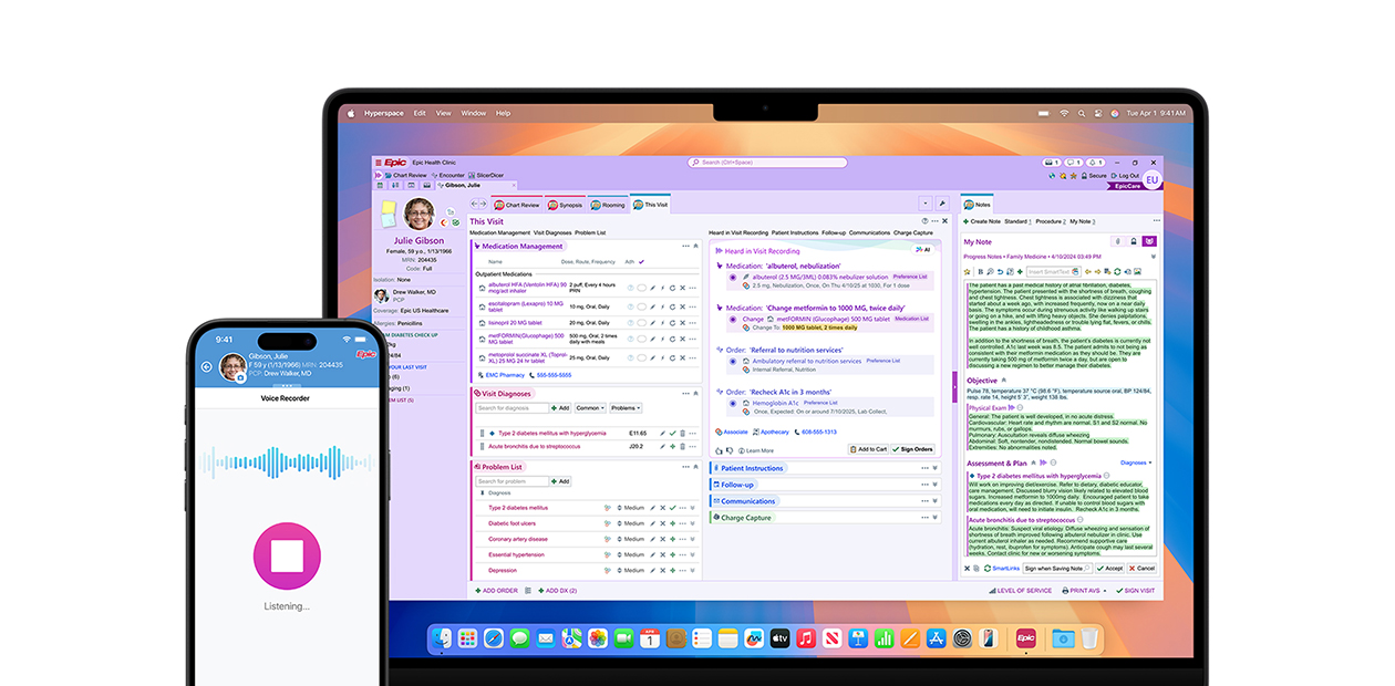 Epic Hyperspace helps providers access and update patient records quickly and easily. Authenticate using Touch ID and stay a step ahead with AI-powered clinical summaries, AI-drafted replies to patient messages and ambient documentation technology.