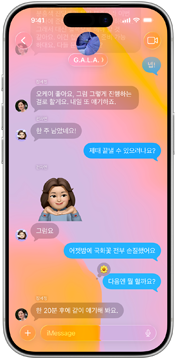 멋진 기본 탑재 옵션 중에서 선택하거나 자신이 갖고 있는 사진을 골라 ‘메시지’ 앱 대화에 자신만의 독특한 개성을 더할 수 있습니다.