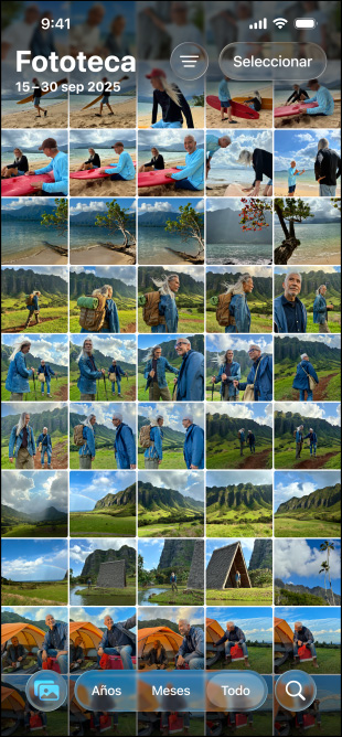 El diseño de iOS refleja y refracta el fondo en tiempo real y se adapta a tu contenido en todos tus dispositivos y apps.