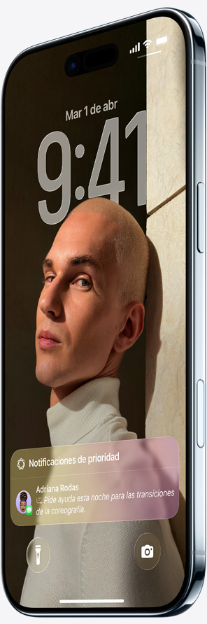 La hora se adapta a tu foto de fondo y a las notificaciones, manteniendo siempre el enfoque en el sujeto. Al mover tu iPhone, la foto cobra vida gracias a un nuevo efecto 3D.15
