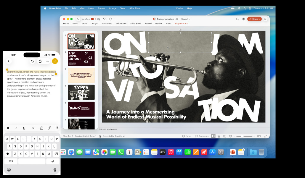 La Mac, el iPhone, el iPad y el Apple Watch ya son increíbles por su cuenta. Pero al usarlos juntos, se lucen mucho más. Gracias a Continuidad, tus dispositivos trabajan en equipo con total fluidez para que puedas acceder a un mundo de funcionalidades espectaculares. Empieza a escribir un email en tu Mac y termínalo en el iPad. Toma una foto en tu iPhone para verla al instante en la Mac. O haz llamadas sin tener que usar el iPhone.1